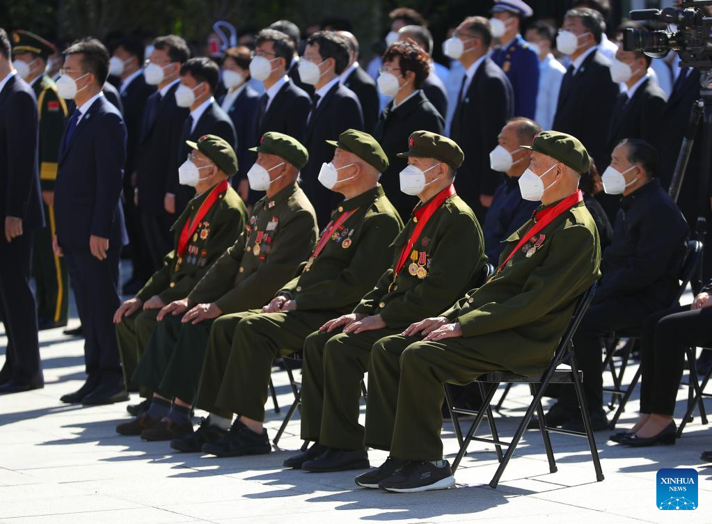 Veterans attend a ceremony to commemorate the September 18 Incident and the Chinese People's War of Resistance against Japanese Aggression at the 9.18 Historical Museum in Shenyang, capital of northeast China's Liaoning Province, Sept. 18, 2022.