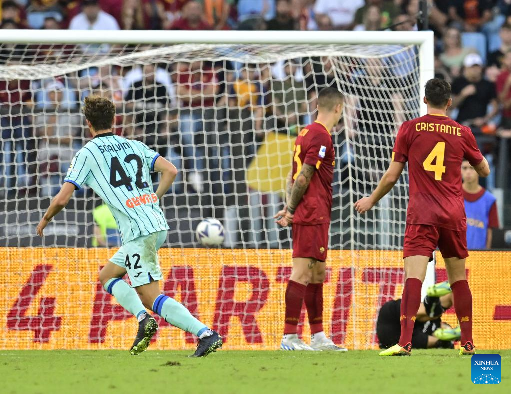 Atalanta's Giorgio Scalvini (L) scores his goal during a Serie A football match between Roma and Atalanta in Rome, Italy, on Sept. 18, 2022. (Photo by Augusto Casasoli/Xinhua)