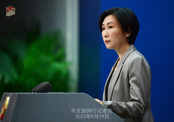 China's Foreign Ministry spokeswoman Mao Ning holds a regular press conference on Sept 19, 2022. [Photo/fmprc.gov.cn]