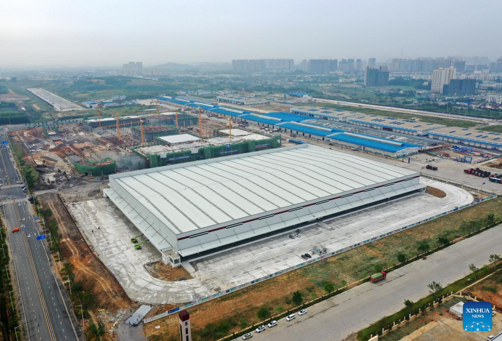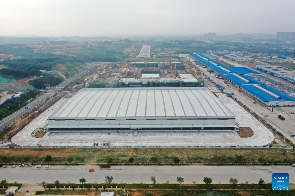 Aerial photo taken on Sept. 20, 2022 shows the construction site of an e-commerce logistics zone project in the Nanning International Railway Port in Nanning, capital of south China's Guangxi Zhuang Autonomous Region. (Xinhua/Lu Boan)