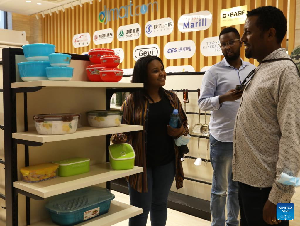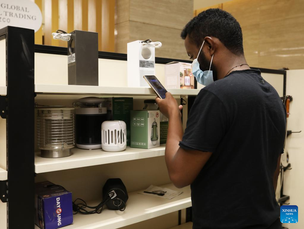 People view cross-border e-commerce products at the Djibouti International Free Trade Zone in Djibouti, Sept. 14, 2022.