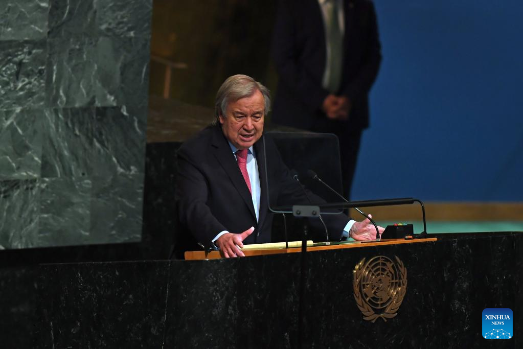 UN Secretary-General Antonio Guterres speaks at the opening of the General Debate of the 77th session of the UN General Assembly at the UN headquarters in New York, Sept. 20, 2022.