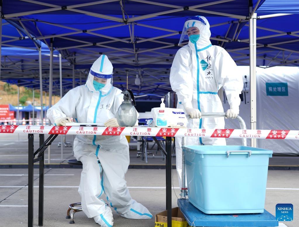 Medical workers of an air-inflated testing lab prepare to receive nucleic acid samples in Chengdu, southwest China's Sichuan Province, Sept. 5, 2022. (Xinhua/Liu Qiong)