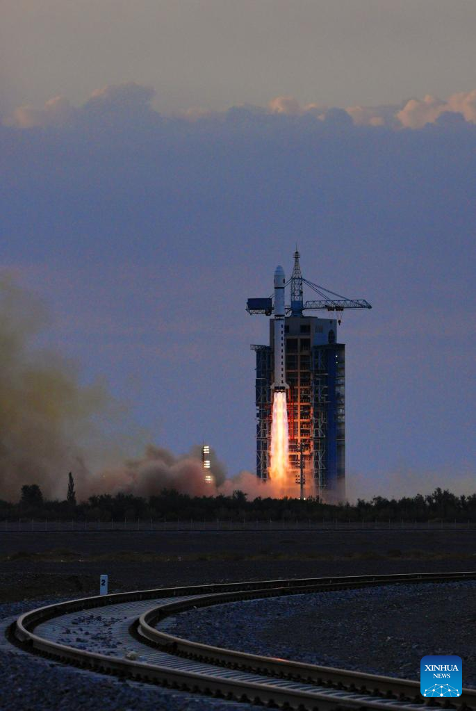 A Long March-2D carrier rocket carrying the Yunhai-1 03 satellite blasts off from the Jiuquan Satellite Launch Center in northwest China, Sept. 21, 2022. The satellite was launched at 7:15 a.m. (2315 GMT Tuesday) and has entered the planned orbit successfully. (Photo by Wang Heng/Xinhua)