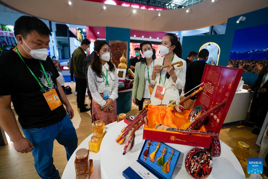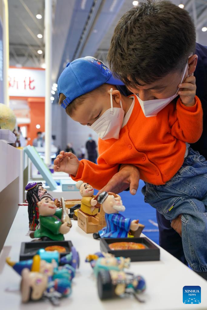 Visitors view handicrafts at the seventh China-Eurasia Expo in Urumqi, northwest China's Xinjiang Uygur Autonomous Region, Sept. 21, 2022.