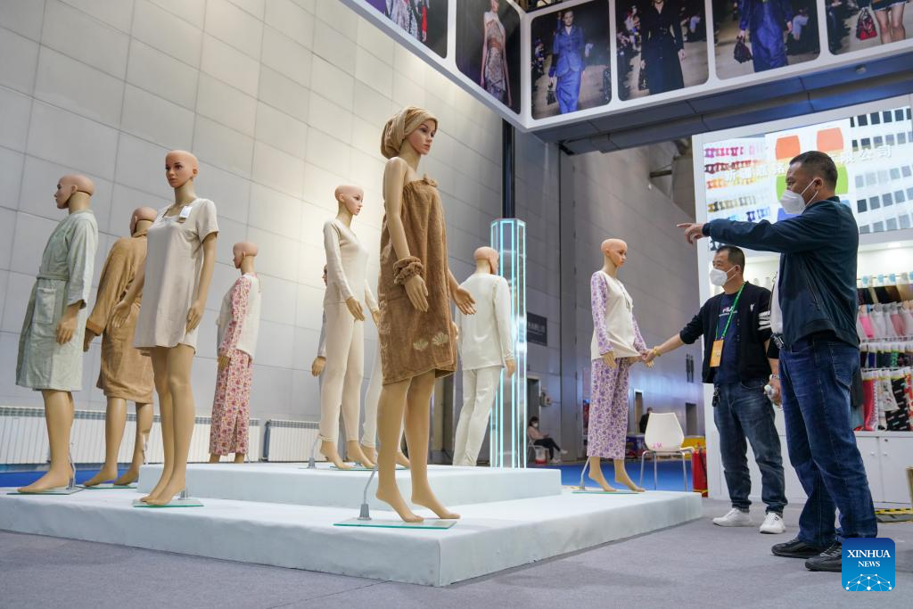 Visitors view cotton products at the seventh China-Eurasia Expo in Urumqi, northwest China's Xinjiang Uygur Autonomous Region, Sept. 21, 2022.