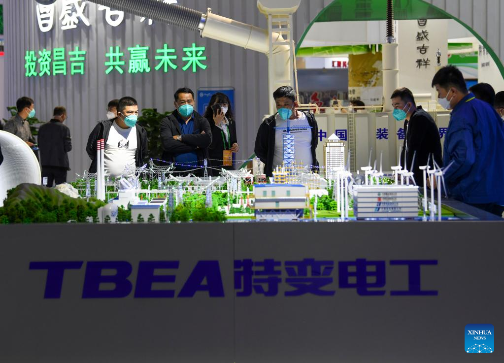 People visit the booth of TBEA Co., Ltd at the seventh China-Eurasia Expo in Urumqi, northwest China's Xinjiang Uygur Autonomous Region, Sept. 20, 2022.