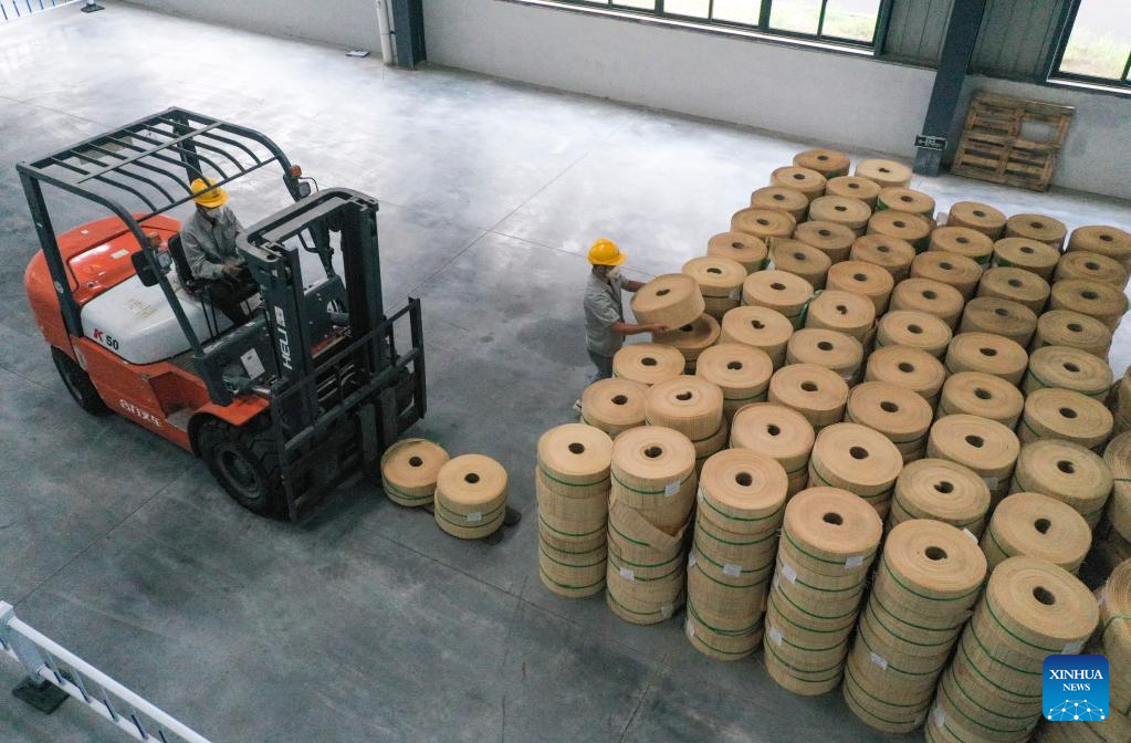 The annual capacity of the base is about 9,000 tonnes and the output value is about 200 million yuan (about 28.7 million U.S. dollars). BWCP is a bio-based pipe product with lightweight and high pressure resistance features. (Xinhua/Wang Quanchao)