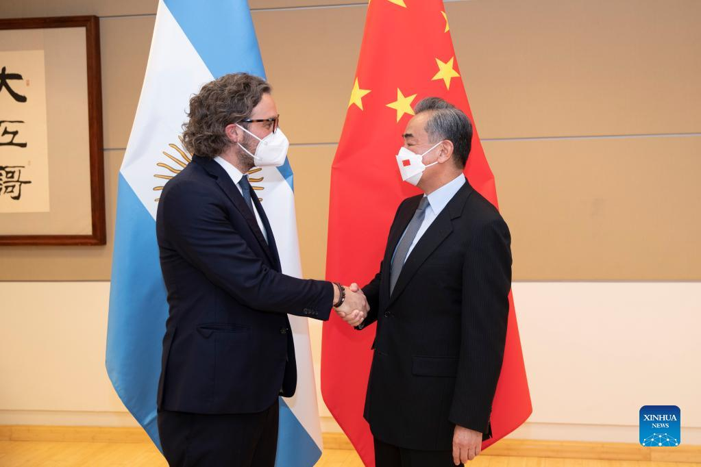 Wang said China-Argentina strategic cooperation is in line with the trend of the times, adding China supports Argentina in playing a bigger role in international and regional affairs, and appreciates Argentina for fulfilling its responsibilities as the rotating chair of the Community of Latin American and Caribbean States (CELAC).