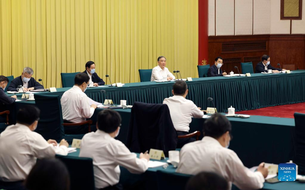Wang Yang, a member of the Standing Committee of the Political Bureau of the Communist Party of China (CPC) Central Committee and chairman of the Chinese People's Political Consultative Conference (CPPCC) National Committee, presides over and addresses a meeting to study the regulations on the CPC's work regarding political consultation in Beijing, capital of China, Sept. 21, 2022. (Xinhua/Liu Weibing)