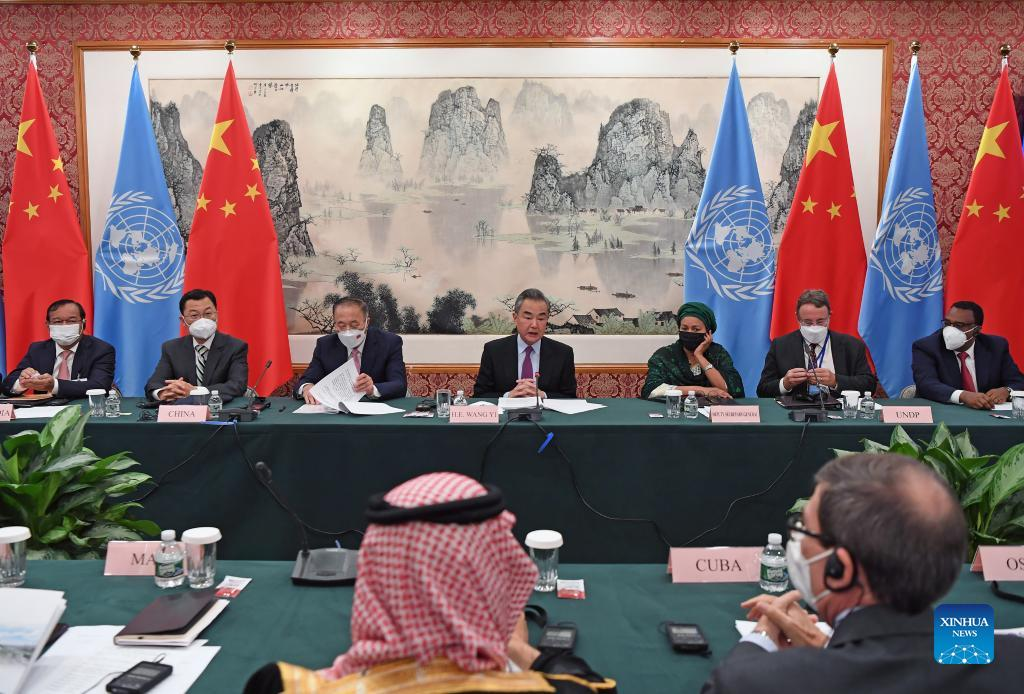 Chinese State Councilor and Foreign Minister Wang Yi chairs the Ministerial Meeting of the Group of Friends of the Global Development Initiative (GDI) in New York, the United States, Sept. 20, 2022. (Xinhua/Li Rui)