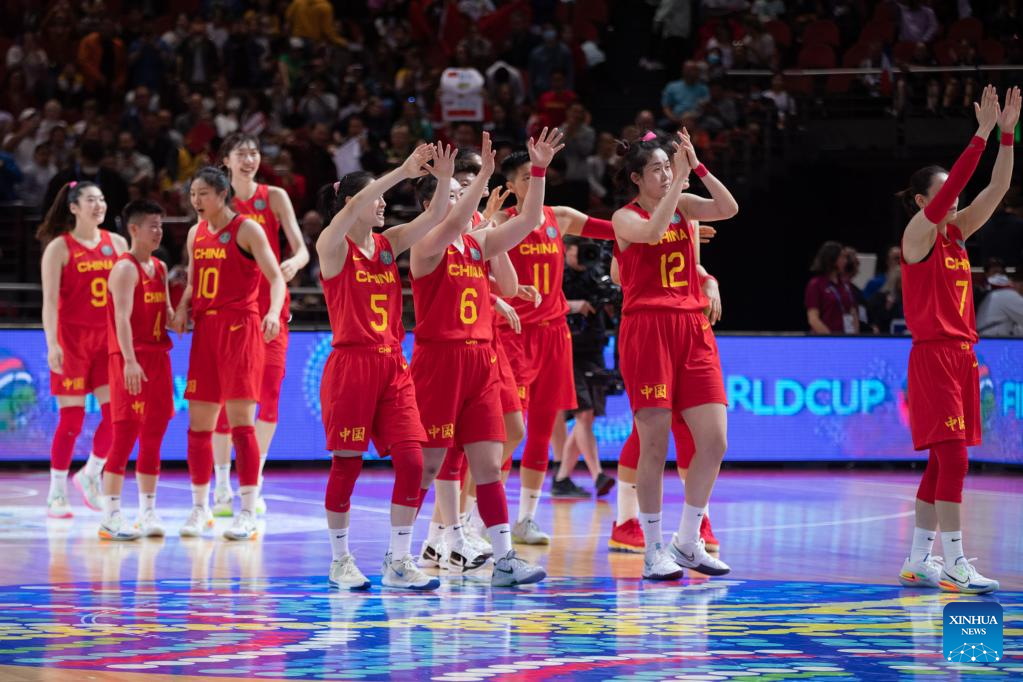 Players of China celebrate victory after a Group A match between China and South Korea at the Women's Basketball World Cup 2022 in Sydney, Australia, Sept. 22, 2022. (Photo by Hu Jingchen/Xinhua)