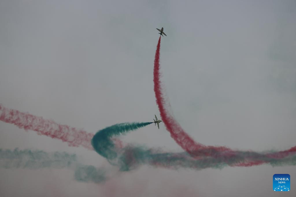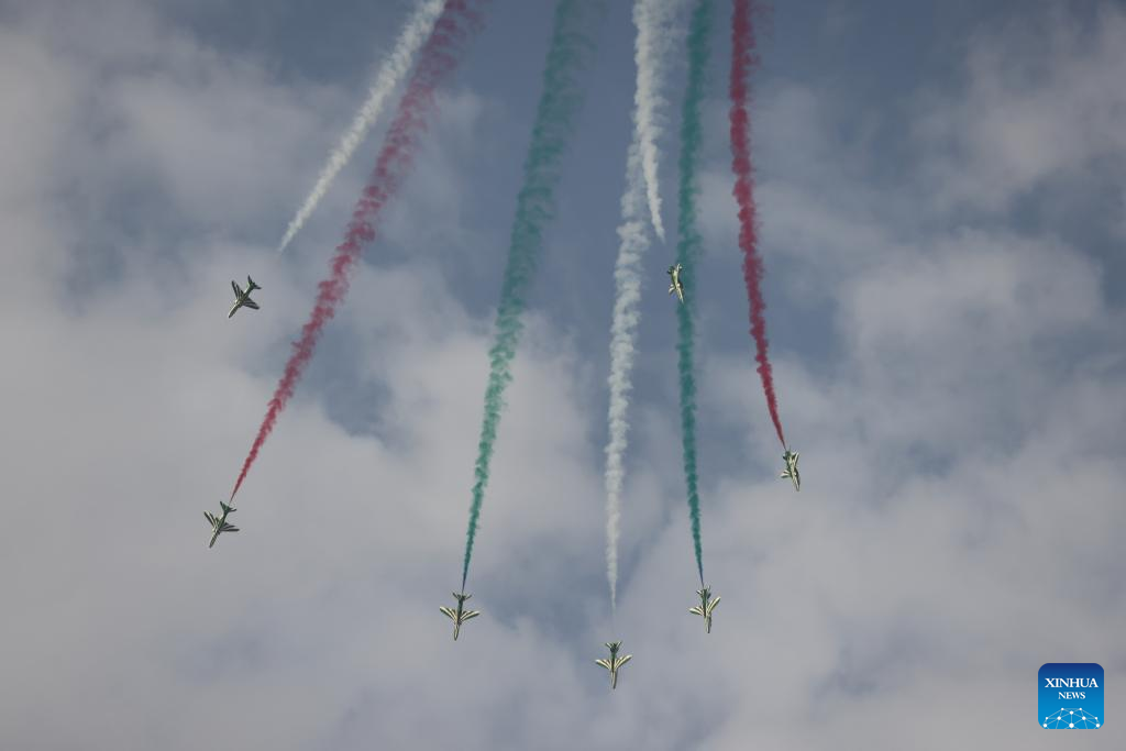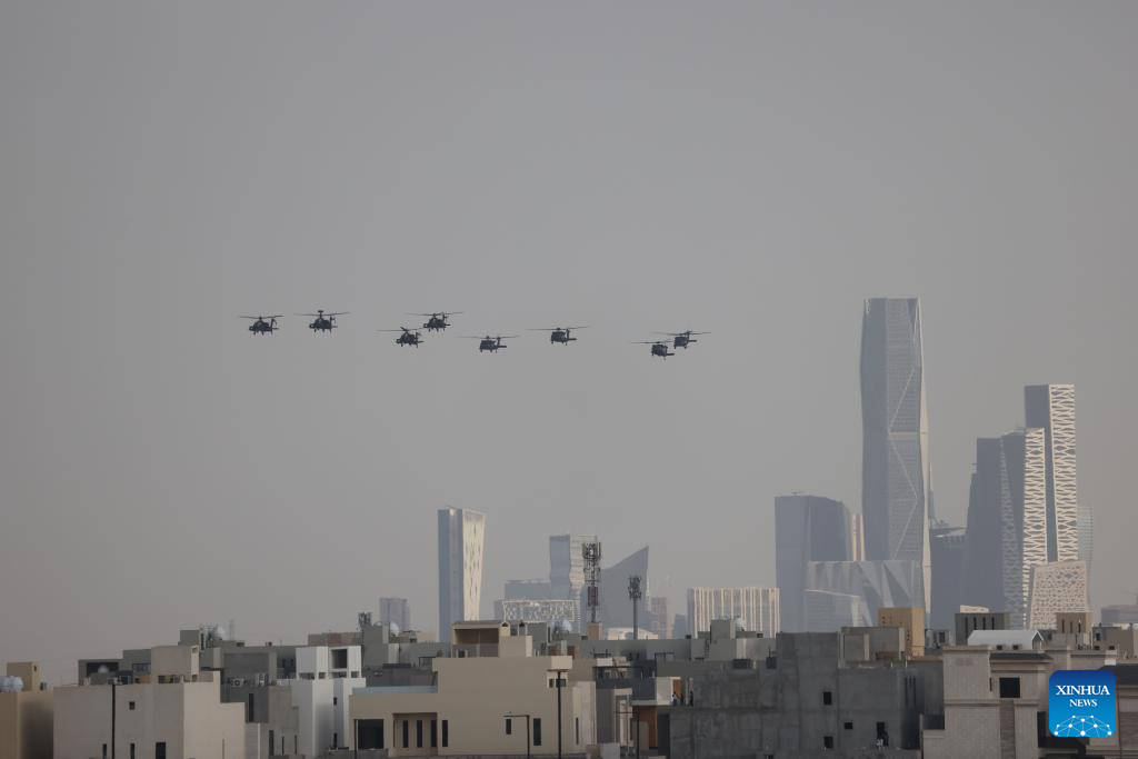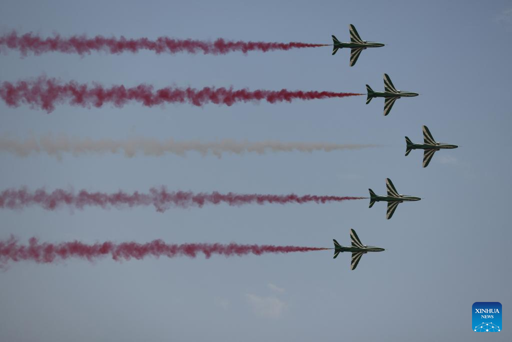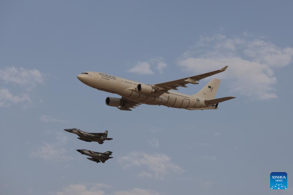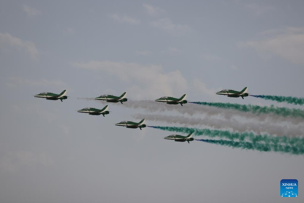 Aircrafts from the Royal Saudi Air Force perform during an air show to celebrate Saudi Arabia's National Day in Riyadh, Saudi Arabia, on Sept. 22, 2022. (Xinhua/Wang Haizhou)
