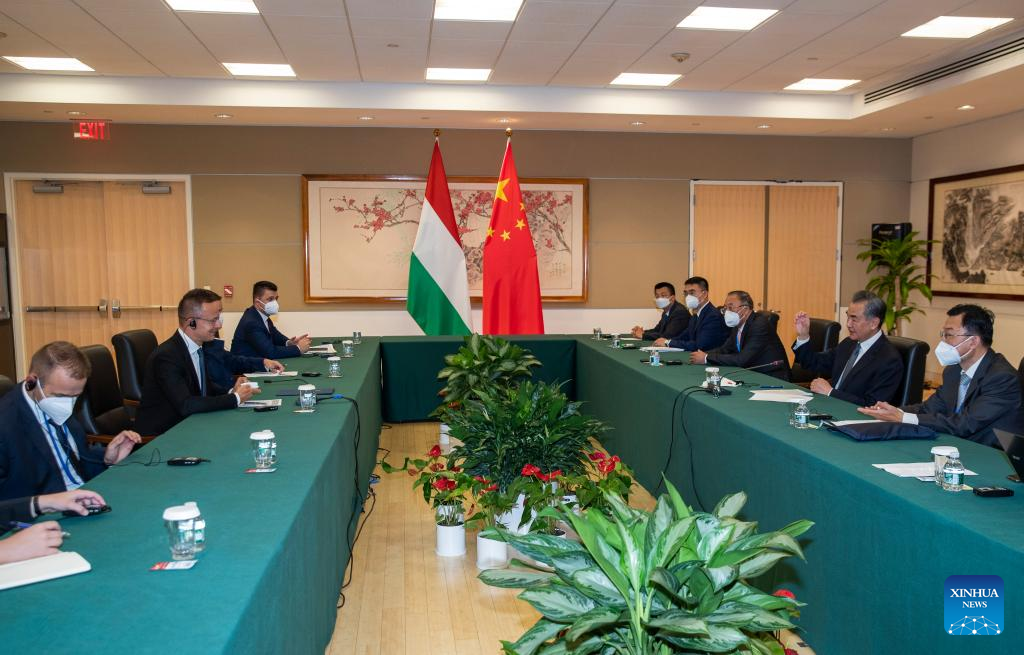 NEW YORK, Sept. 22 (Xinhua) -- Chinese State Councilor and Foreign Minister Wang Yi met here on Wednesday with Hungarian Minister of Foreign Affairs and Trade Peter Szijjarto on the sidelines of the 77th session of the UN General Assembly.