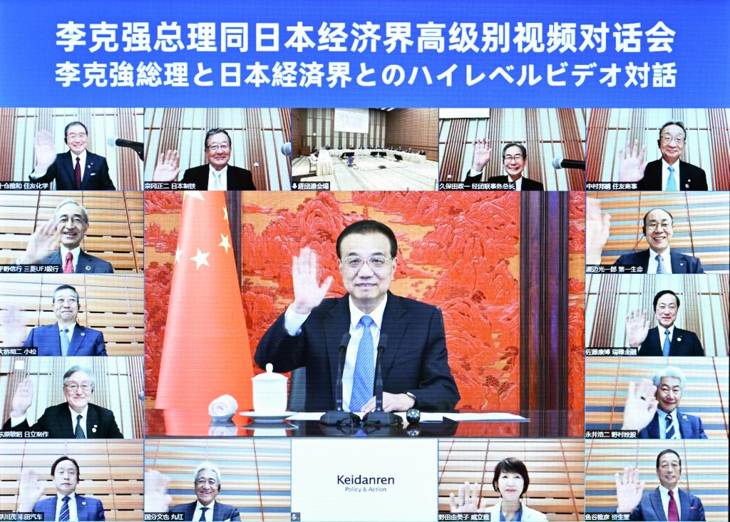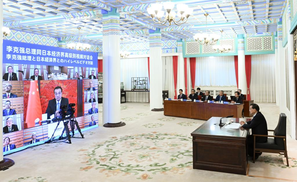 Li made the remarks during a high-level video dialogue with representatives of the Japanese business community. He exchanged views with the representatives on a wide range of topics, including China-Japan relations, economic and trade cooperation, global economic and financial challenges, climate change, and aging populations.