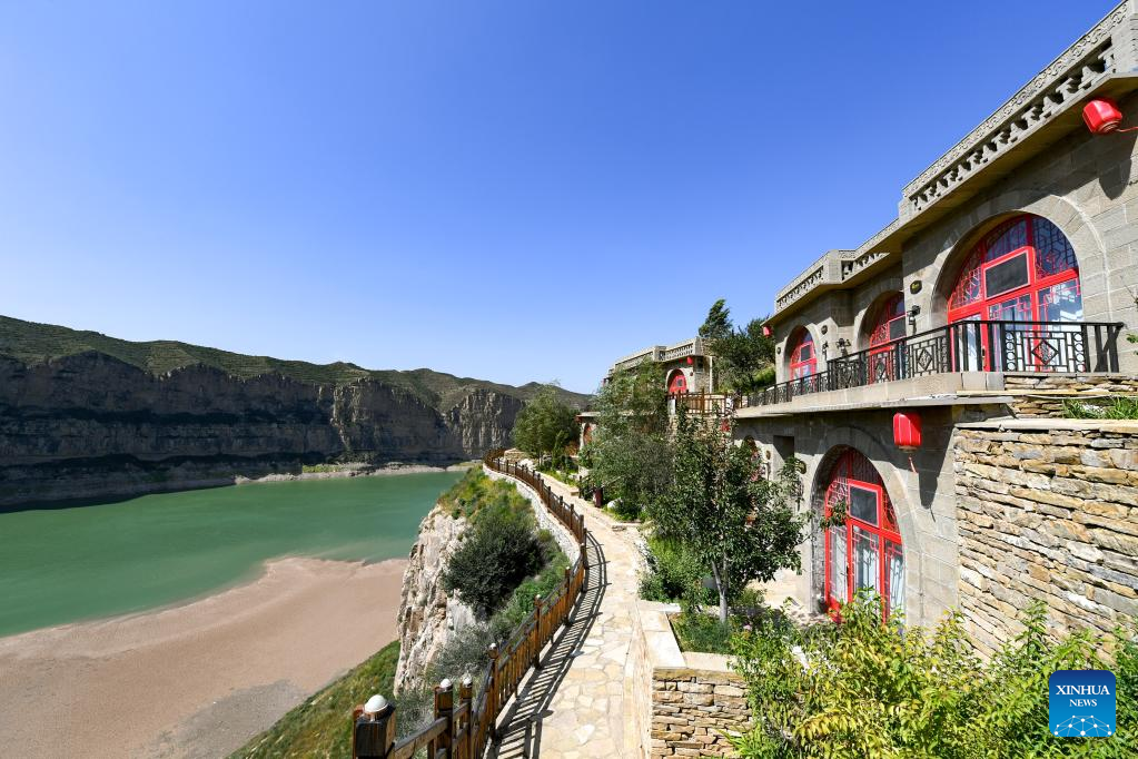 Photo taken on Sept. 21, 2022 shows the scenery along the bank of a section of the Yellow River in Jungar Banner of Ordos, north China's Inner Mongolia Autonomous Region. (Xinhua/Bei He)