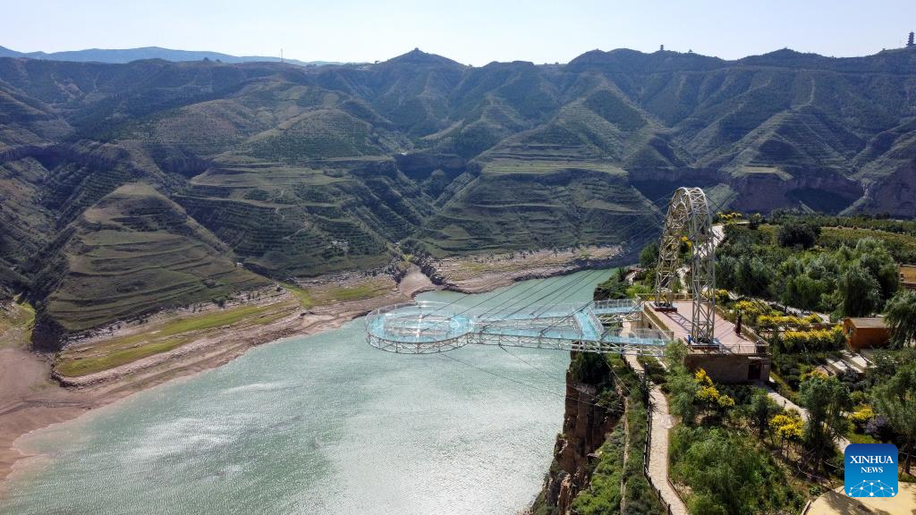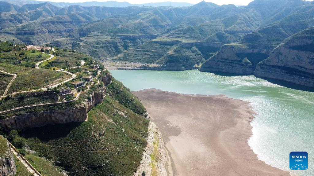 Aerial photo taken on Sept. 22, 2022 shows the scenery along a section of the Yellow River in Togtoh County of Hohhot, north China's Inner Mongolia Autonomous Region. (Xinhua/Wang Zecong)