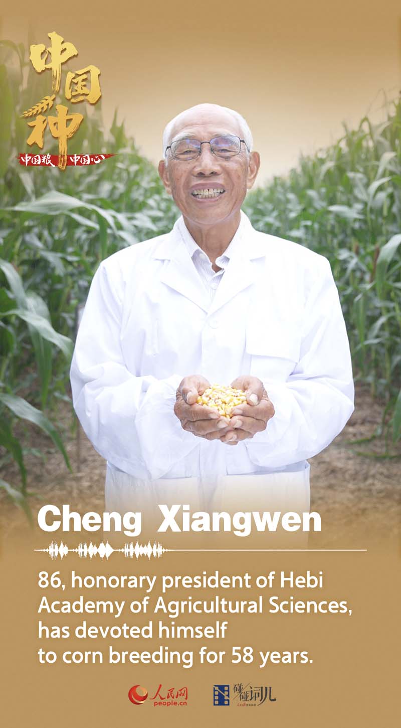 Cheng Xiangwen, 86, honorary president of Hebi Academy of Agricultural Sciences, has devoted himself to corn breeding for 58 years.