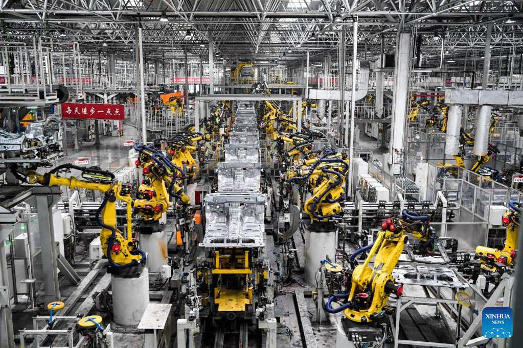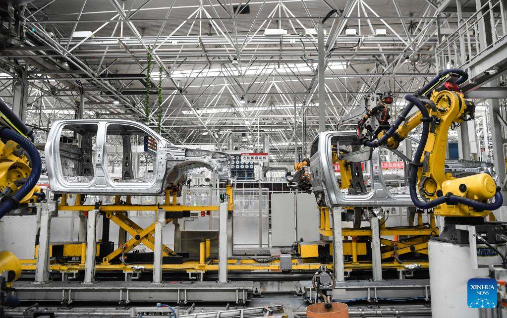 Workers work at an intelligent production base of the Great Wall Motors (GWM) in Yongchuan District of southwest China's Chongqing, Sept. 22, 2022. In recent years, Yongchuan District of Chongqing has focused on the development of smart manufacturing which features integrated industrial Internet, big data, artificial intelligence. Smart manufacturing has now become a new growth driver for the local economy. (Xinhua/Wang Quanchao)