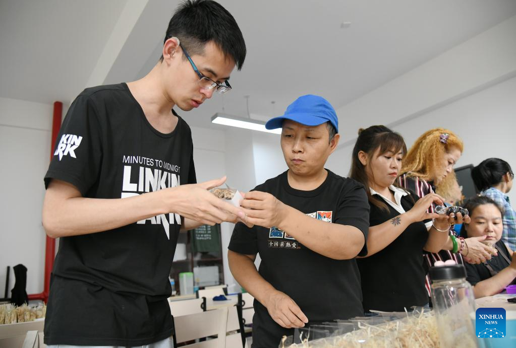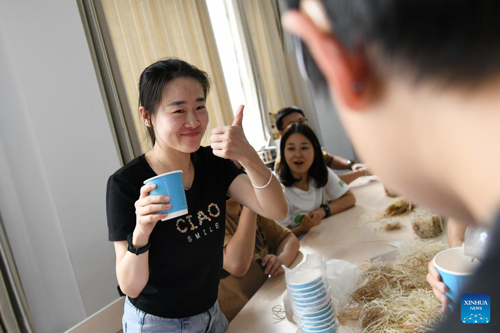 Trainees prepare to make soaps with coffee grounds at Shaanxi Urban Economy School in Xi'an, capital of northwest China's Shaanxi Province, Sept. 22, 2022. The International Day of the Deaf falls on the fourth Sunday each September. Since 2019, Shaanxi Urban Economy School has been providing free barista training for the hearing-impaired. Trainees can learn coffee-making skills as well as cafe operation knowledge during the training programme, which could help them in paving the way either to start their coffee business or get employed in this industry. So far, more than 20 people who have graduated from the training programme are working at cafes in various places across China. (Xinhua/Li Yibo)