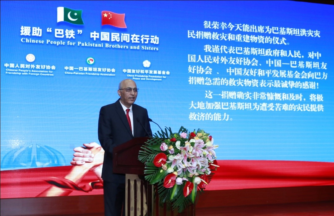 On behalf of the government and people of Pakistan, Moin ul Haque extended his sincerest gratitude to China and Chinese social forces for the donation of relief items that are urgently needed in Pakistan.