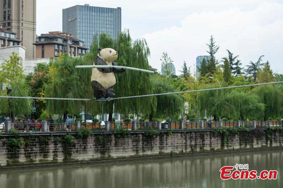 'Kungfu' panda 'walks' tightrope in Chengdu
