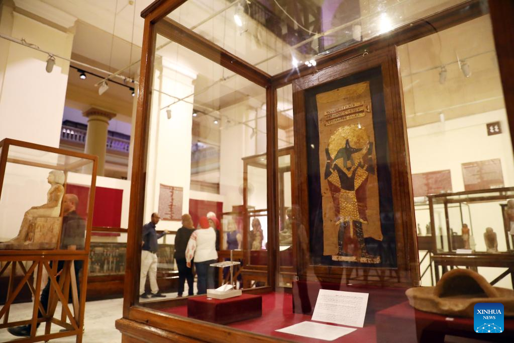 People visit a temporary exhibition of antiquities at Egyptian Museum in Cairo, Egypt, on Sept. 27, 2022. The Egyptian Museum on Tuesday opened a temporary exhibition of antiquities to mark World Tourism Day, which coincides this year with the 200th anniversary of the creation of the field of Egyptology and the decoding of ancient hieroglyphs. (Xinhua/Ahmed Gomaa)