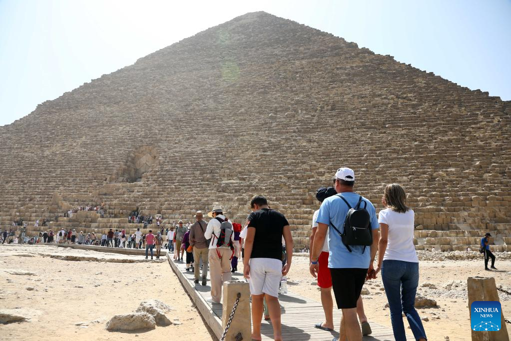 Tourists visit the Giza Pyramids scenic spot during the World Tourism Day in Giza, Egypt, Sept. 27, 2022. Egypt on Tuesday opened most of its museums and archaeological sites, including the Giza Pyramids, to visitors for free on the occasion of the World Tourism Day. (Xinhua/Ahmed Gomaa)