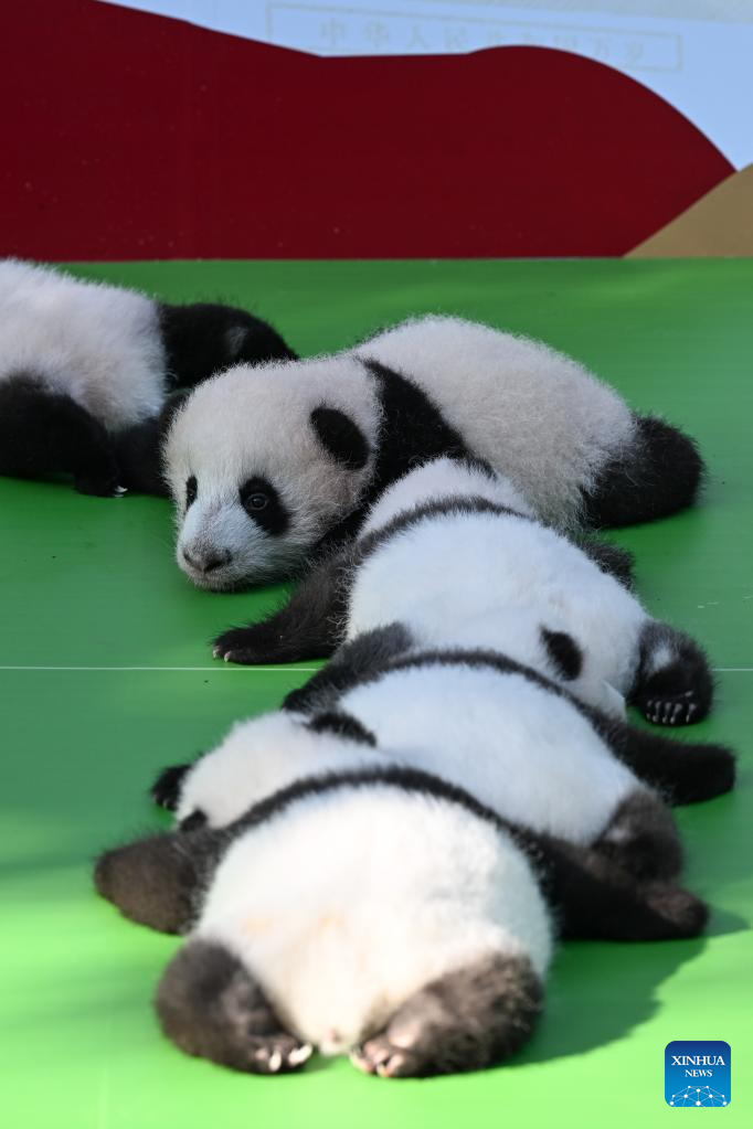 Newborn giant panda cubs are pictured at the Chengdu Research Base of Giant Panda Breeding in Chengdu, southwest China's Sichuan Province, Sept. 28, 2022.
