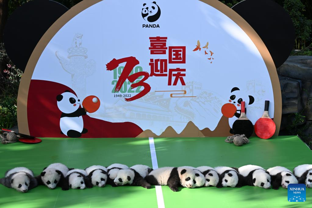 Thirteen panda cubs, all born this year, on Wednesday met the public at the breeding base in Chengdu, capital of southwest China's Sichuan Province.