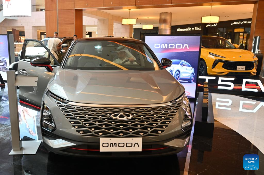 People visit an auto show of Chinese car brands in Hawalli Governorate, Kuwait, on Sept. 28, 2022. (Photo by Asad/Xinhua)