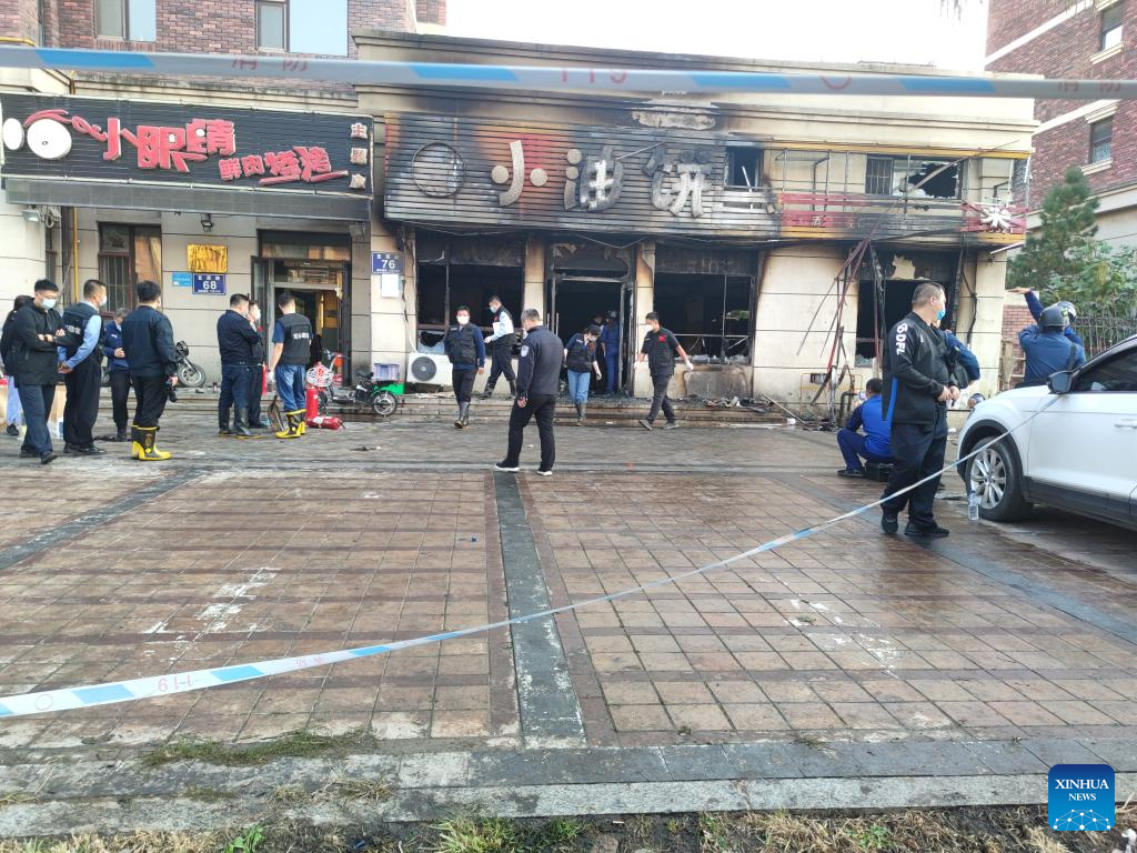 Photo taken on Sept. 28, 2022 shows the site of a fire accident at a restaurant in Changchun, northeast China's Jilin Province. (Xinhua/Zhao Dandan)