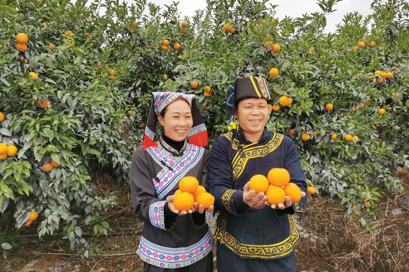Local farmers show citrus fruits in an orchard in the city of Chongzuo, Guangxi Zhuang Autonomous Region. (Photo/Yang Zhenhua)