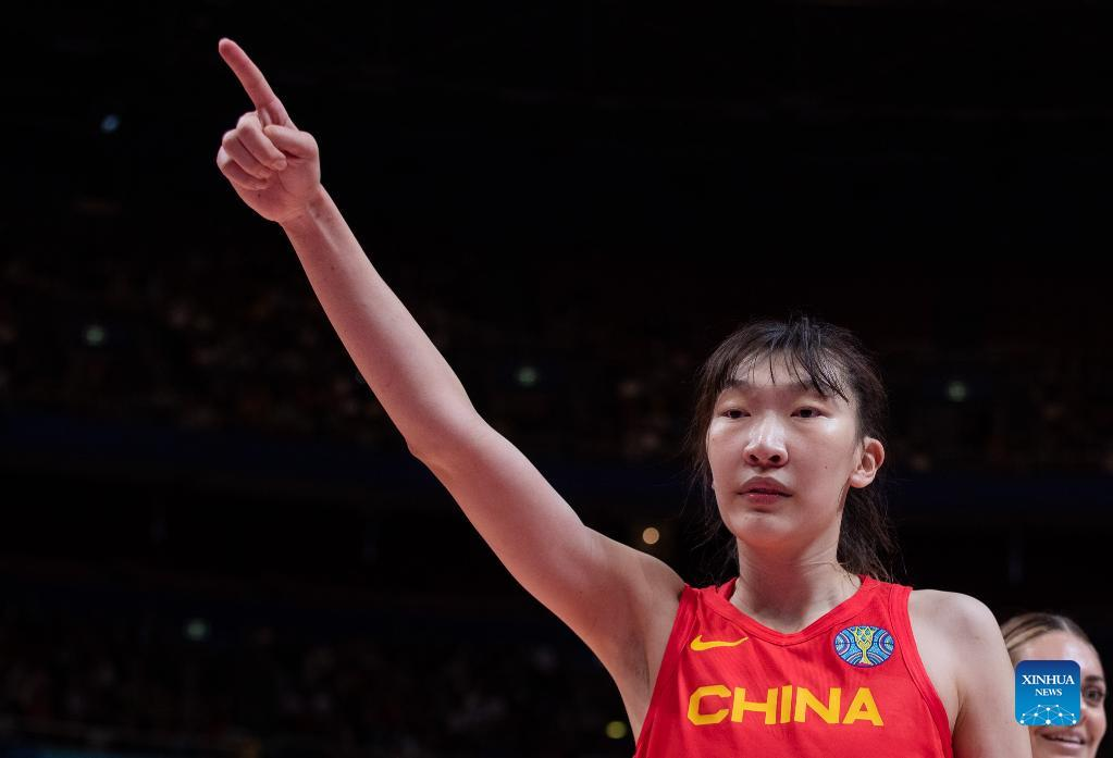 Han Xu of China gestures during the semifinal match against Australia at Women's basketball World cup 2022 in Sydney, Australia, Sept. 30, 2022. (Photo by Hu Jingchen/Xinhua)