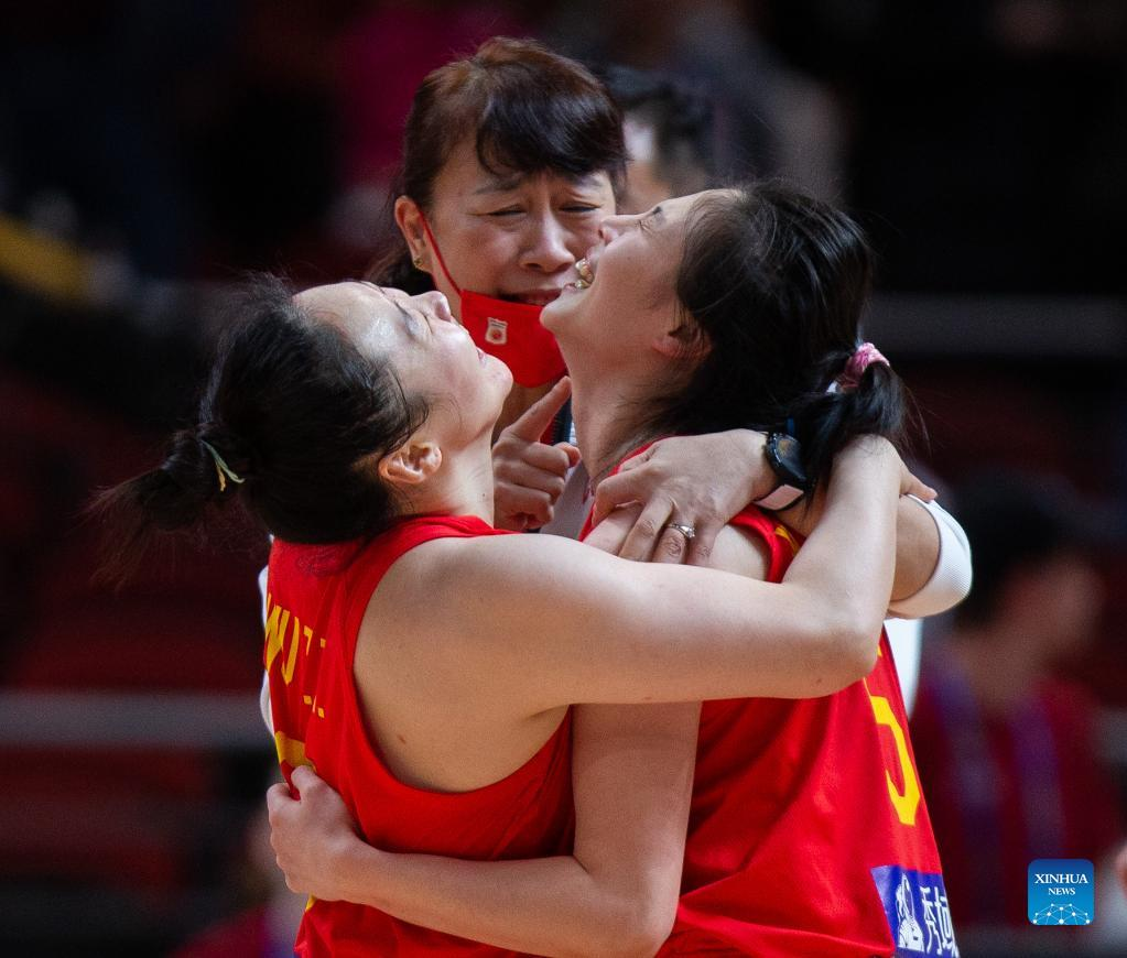 Members of team China celebrate after winning the semifinal match against Australia at Women's basketball World cup 2022 in Sydney, Australia, Sept. 30, 2022. (Photo by Hu Jingchen/Xinhua)
