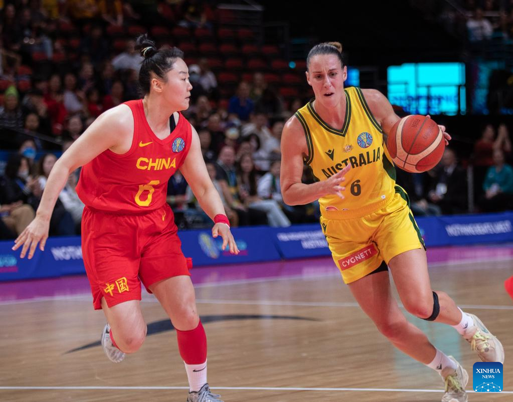 Steph Talbot of Australia dribbles under the defense of Wu Tongtong of China during the semifinal match at Women's Basketball World Cup 2022 in Sydney, Australia, Sept. 30, 2022. (Photo by Hu Jingchen/Xinhua)