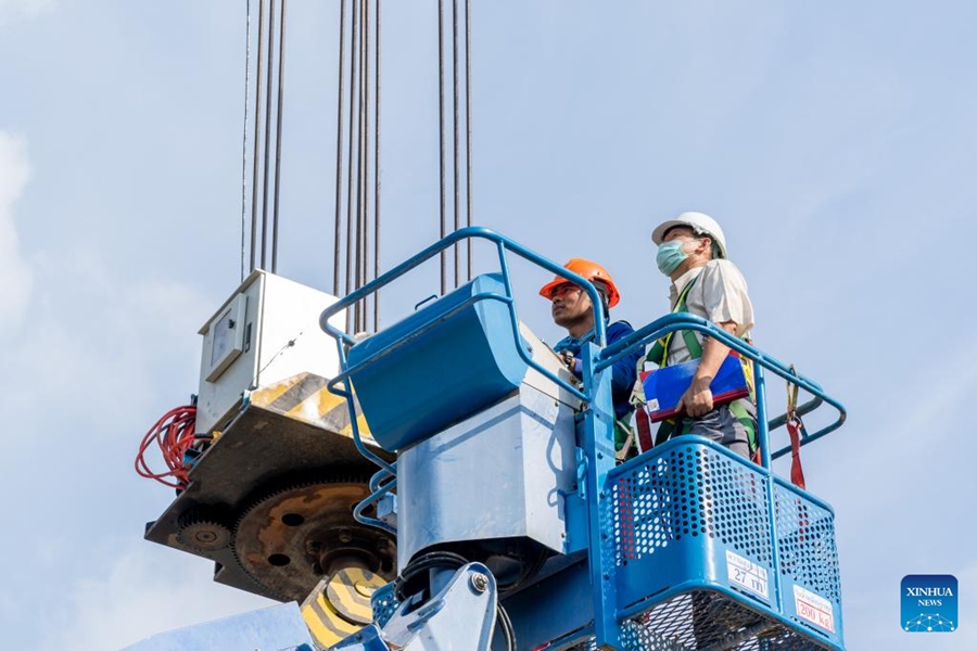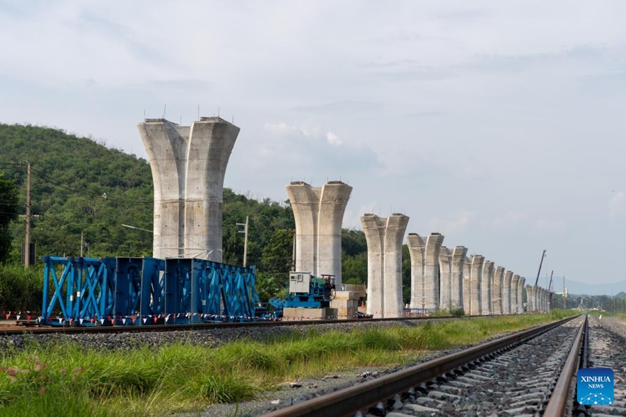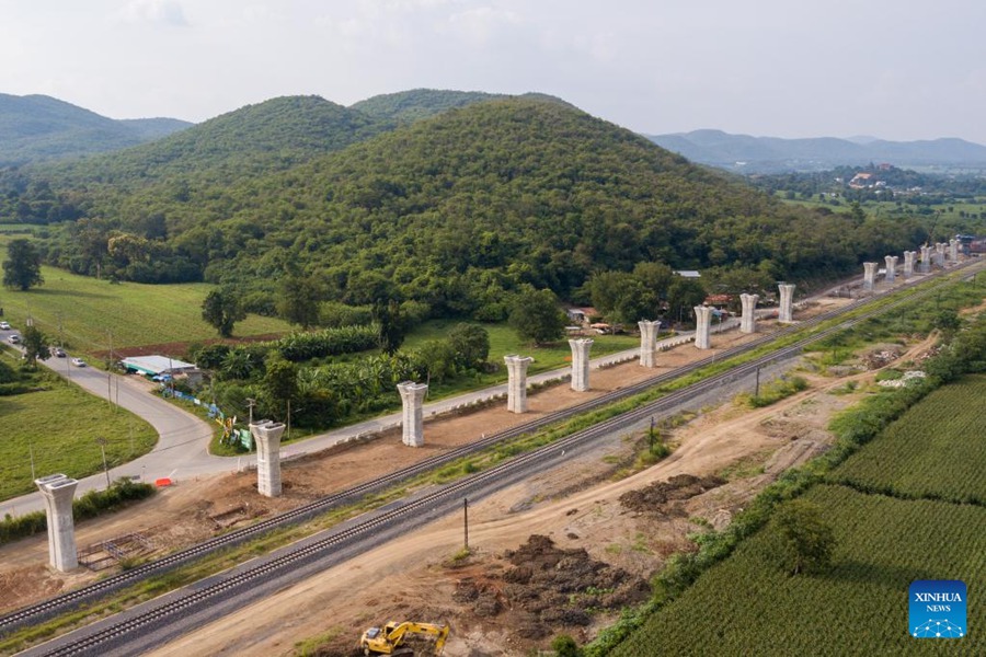 Photo taken on Sept. 7, 2022 shows a construction site of the China-Thailand railway in Nakhon Ratchasima province, Thailand. Twenty-four-year-old Nantapong Nuchanet has been expecting to drive a train that runs fast and steady in his home country Thailand. As the construction of the China-Thailand railway continues apace, he feels getting closer to his dream job. (Xinhua/Lin Hao)