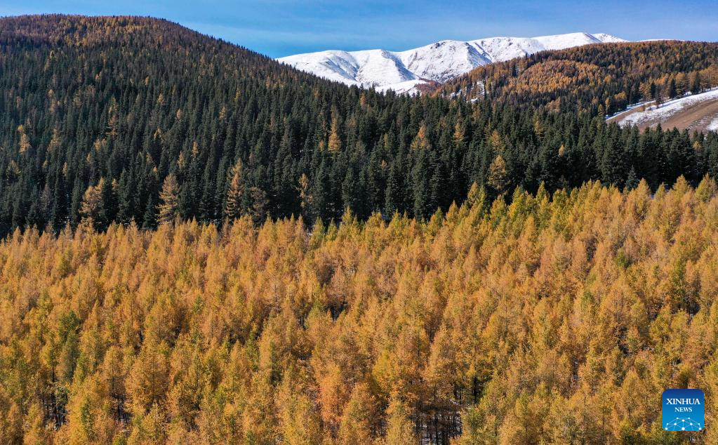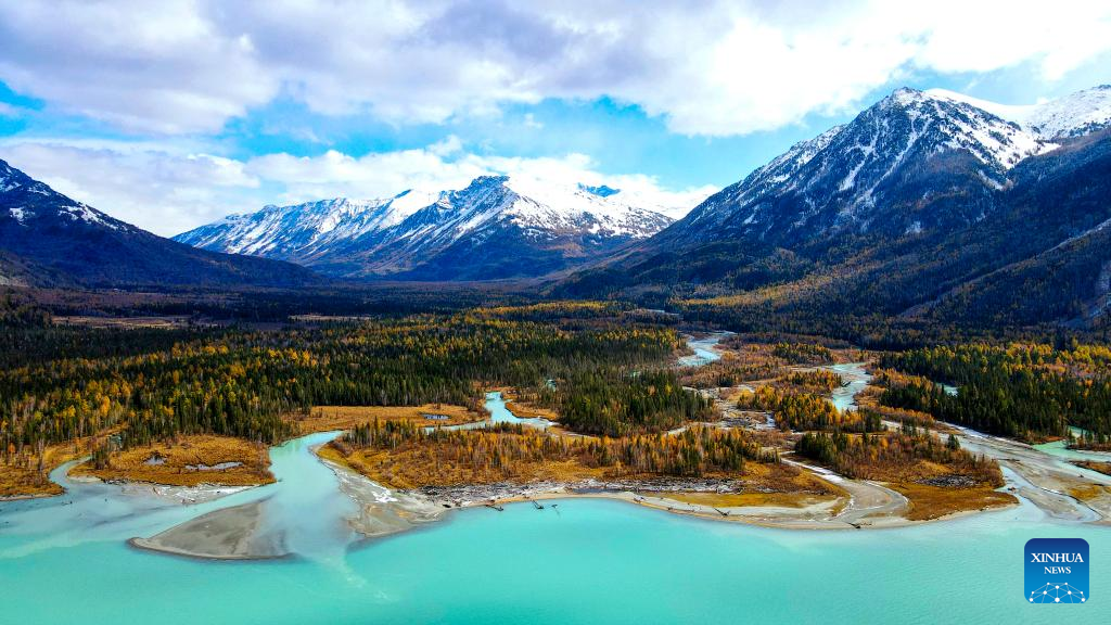 Aerial photo taken on Oct. 1, 2022 shows the scenery of the Kanas scenic area in northwest China's Xinjiang Uygur Autonomous Region. (Photo by Xu Guangjian/Xinhua)
