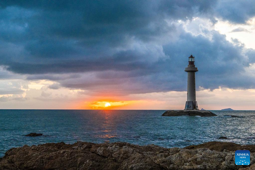 The sunset view is pictured in the Daxiao Dongtian scenic spot of Sanya City, south China's Hainan Province, Oct. 3, 2022. (Xinhua/Pu Xiaoxu)