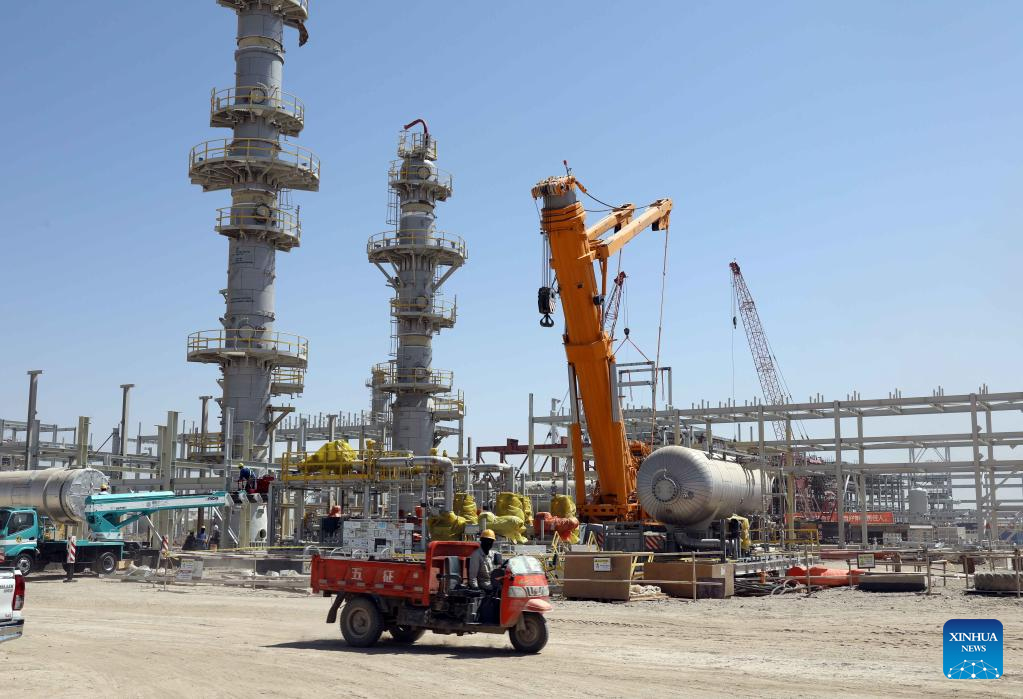 Photo taken on Sept. 25, 2022 shows a natural gas processing plant under construction at PetroChina's Halfaya oil field in Maysan province, Iraq. (Xinhua/Khalil Dawood)