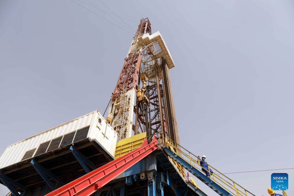 Photo taken on Sept. 25, 2022 shows a drilling platform at PetroChina's Halfaya oil field in Maysan province, Iraq. (Xinhua/Khalil Dawood)