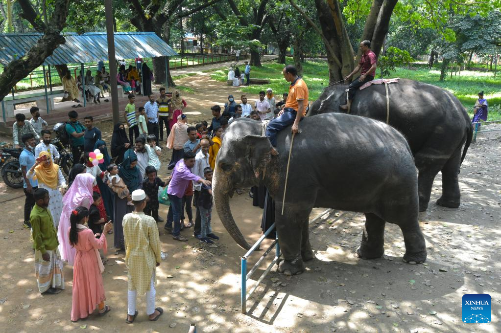 Visitors interact with elephants at the Bangladesh National Zoo in Dhaka, Bangladesh, on Oct. 4, 2022, the World Animal Day. (Xinhua)