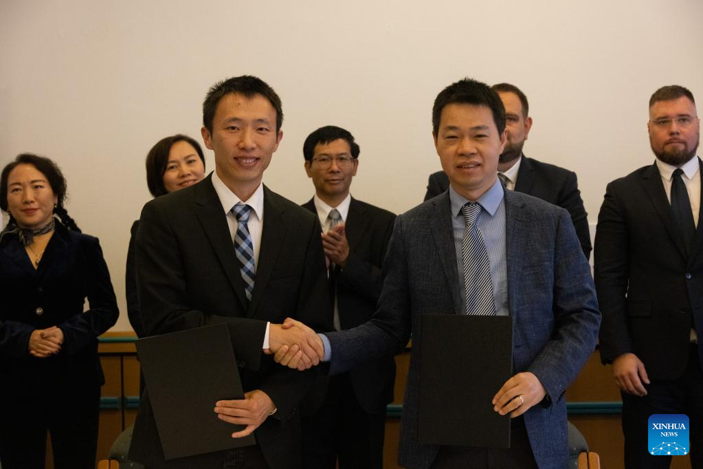 BUDAPEST, Oct. 5 (Xinhua) -- Shanghai Kuaibu New Energy Technology (KBVIP) of China signed its first photovoltaic (PV), battery storage and electric vehicle (EV) charging pilot project agreement with Intretech here on Wednesday.