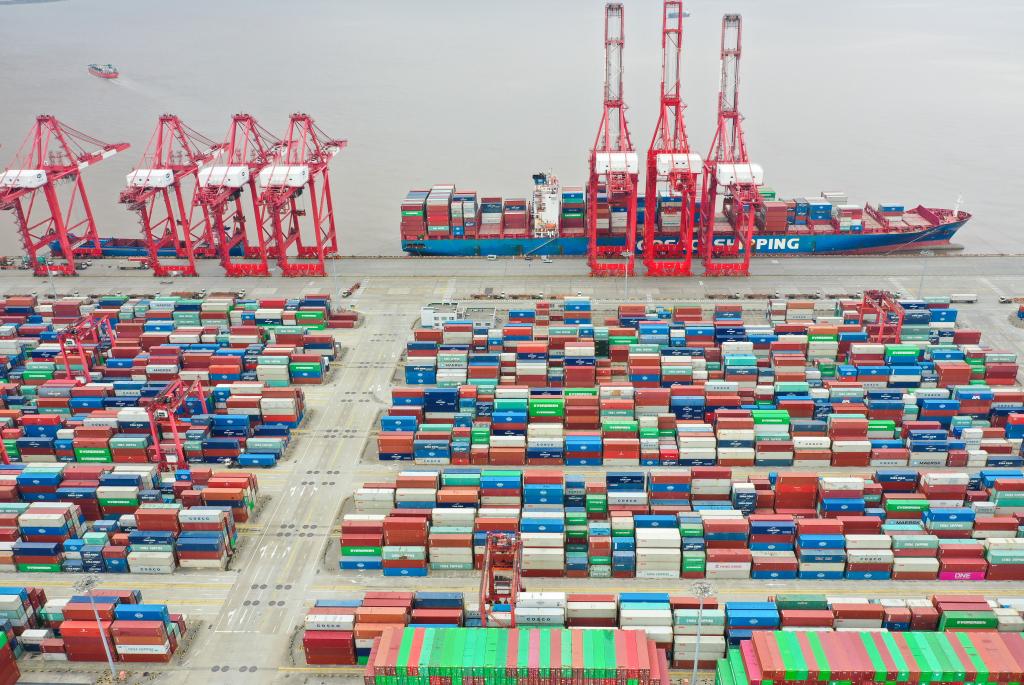 Aerial photo taken on April 15, 2022 shows a view of Shanghai's Yangshan Port in east China. (Xinhua/Ding Ting)