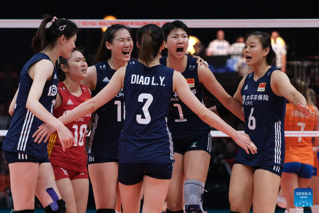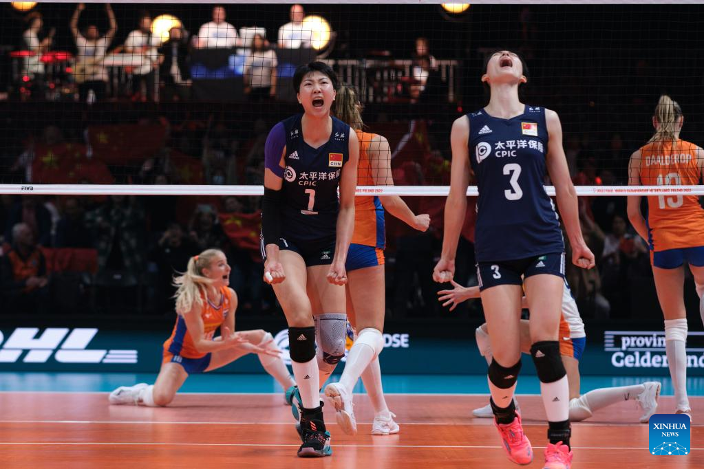 ROTTERDAM, Oct. 6 (Xinhua) -- China got the better of the Netherlands in a breathtaking five-set clash at the women's volleyball World Championship here on Thursday to claim its second win in as many matches in the second phase of the group stage.