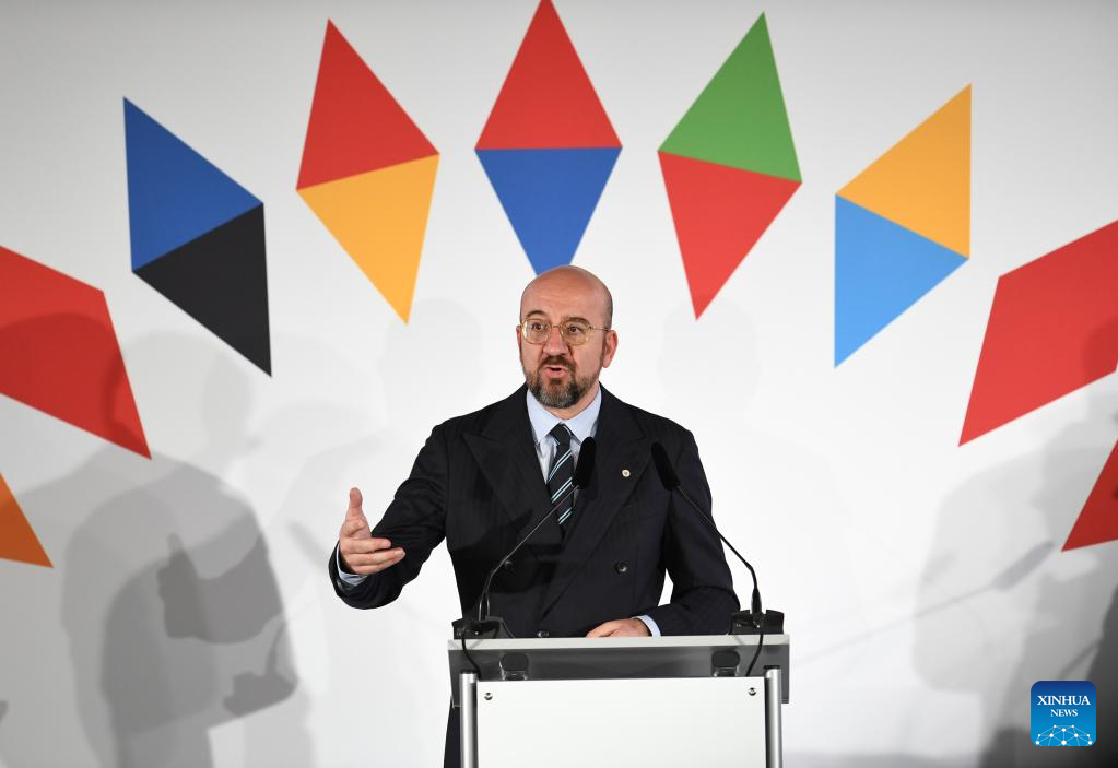 European Council President Charles Michel attends a press conference after an informal summit of the European Union (EU) in Prague, the Czech Republic, on Oct. 7, 2022. European Union (EU) leaders said on Friday at an informal summit here that they are still working on coordinated energy policies for the bloc's member states to address the energy crisis plaguing families and businesses. (Xinhua/Lian Yi)