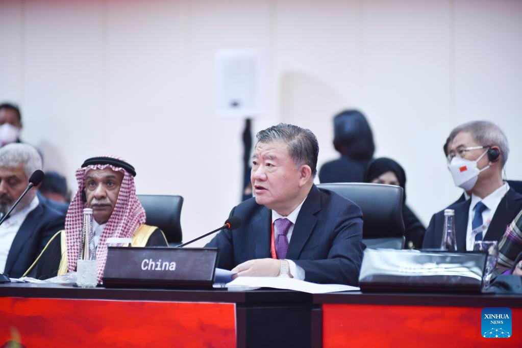 Chen Zhu, vice chairman of China's National People's Congress Standing Committee, delivers a keynote speech at the 8th Group of 20 (G20) Parliamentary Speakers' Summit in Jakarta, Indonesia, Oct. 6, 2022. Chen led a delegation to the summit held here till Friday. (Xinhua)