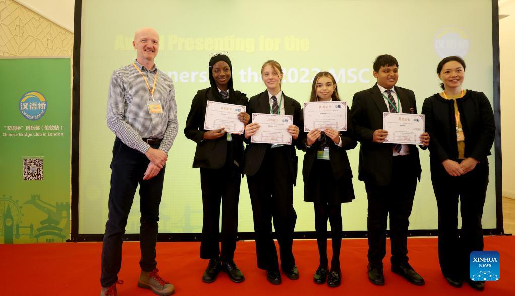 She made the remarks at the prize-giving ceremony at London's Chinatown for the winners of the Chinese proficiency competition -- "Chinese Bridge" -- for primary- and secondary-level students. Altogether, nearly 500 British students participated in the two competitions held earlier this year online.