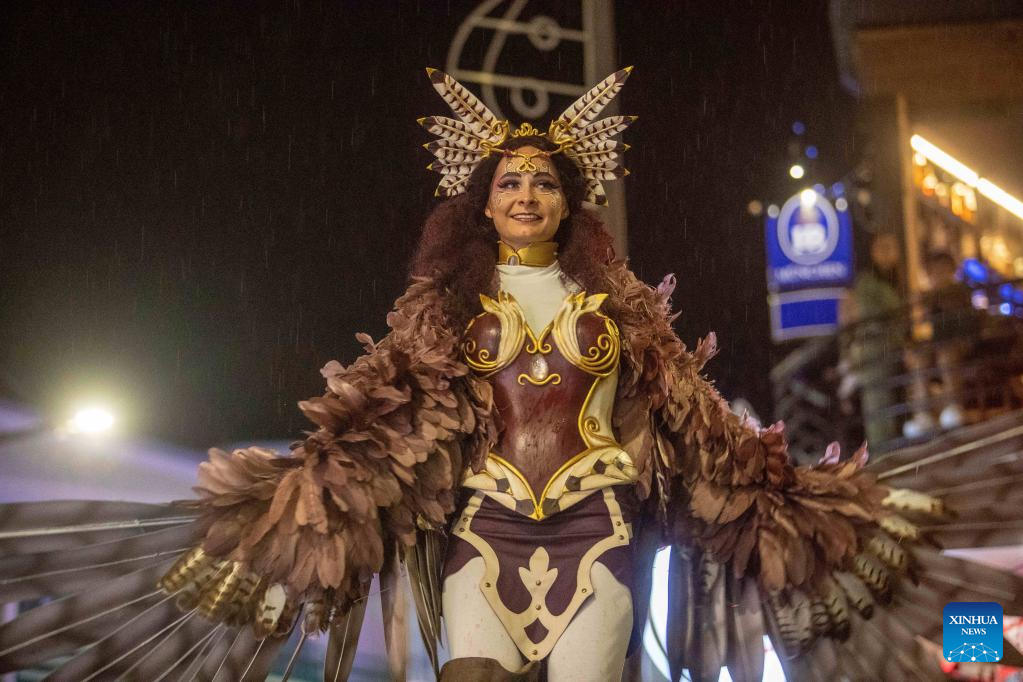Participants perform during the parade of Ayia Napa Medieval Festival in Ayia Napa, Cyprus, Oct. 8, 2022. (Photo by George Christophorou/Xinhua)