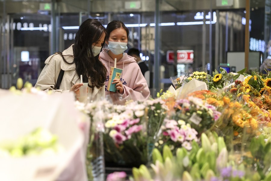 Tourists visit a flower shop in Changsha, central China's Hunan Province, Oct. 5, 2022. (Xinhua/Xue Yuge)
